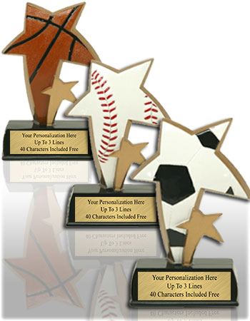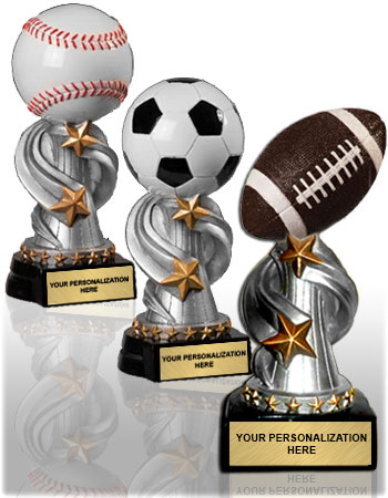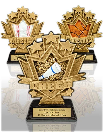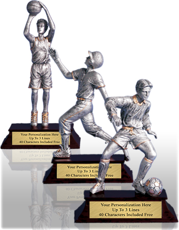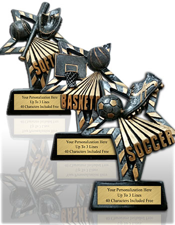 Highlight big plays with sport-specific sculpts: resin baseball trophies with bat-and-ball action, resin basketball trophies with net textures and jump shots, and resin soccer trophies that capture the perfect strike. These sculpture trophies make fantastic MVP, All-Star, and tournament awards.
